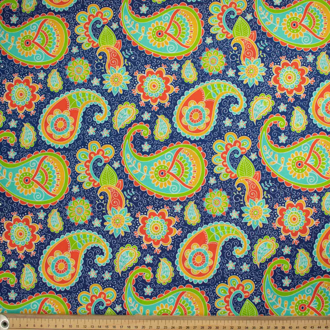 Vintage & Paisley Collection Green & Orange Paisley on Blue Cotton Prints