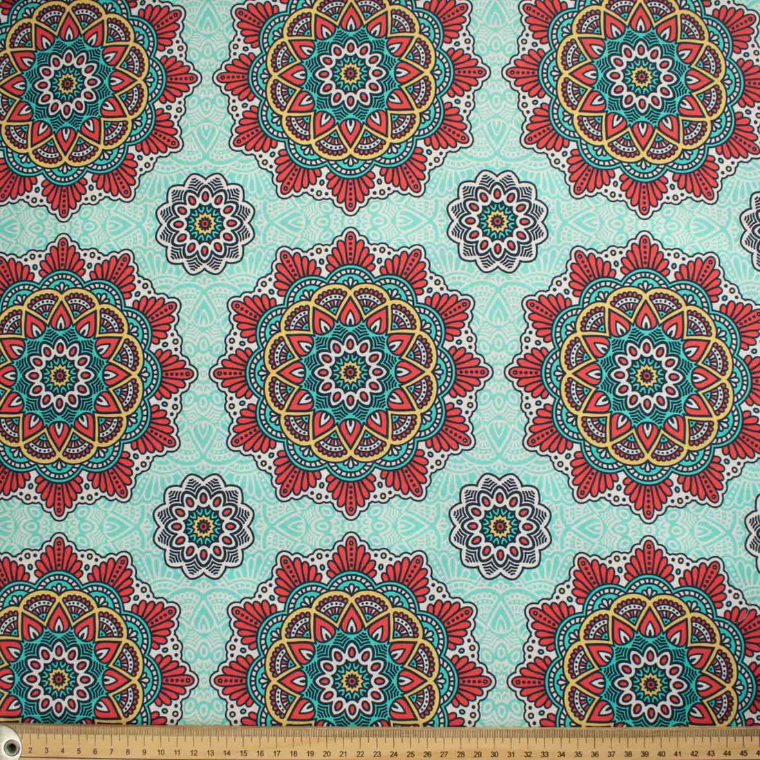 Flowers & Birds Cartoon Collection #19 Blue Mosaic Cotton Prints
