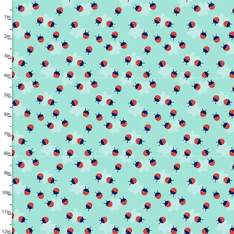 Fabric Editions Madison Red LadyBirds on Turquoise Cotton Prints