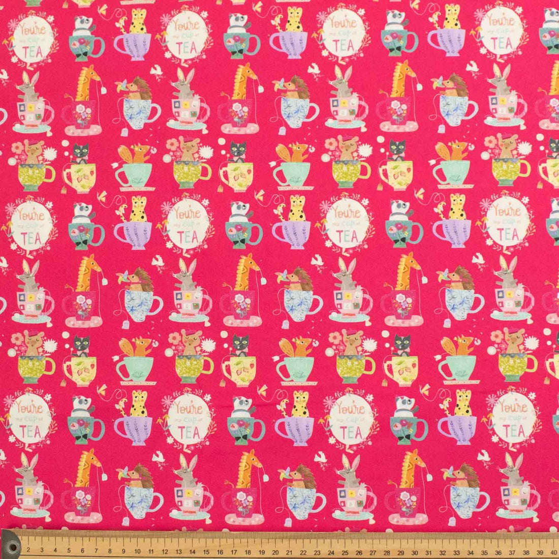 Fuchsia You're My Cup Of Tea Novelty Cotton Print