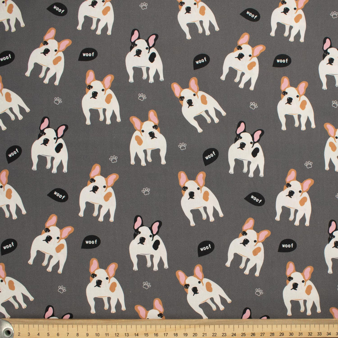 Dog Story Collection French Bull Dog Grey Cotton Prints