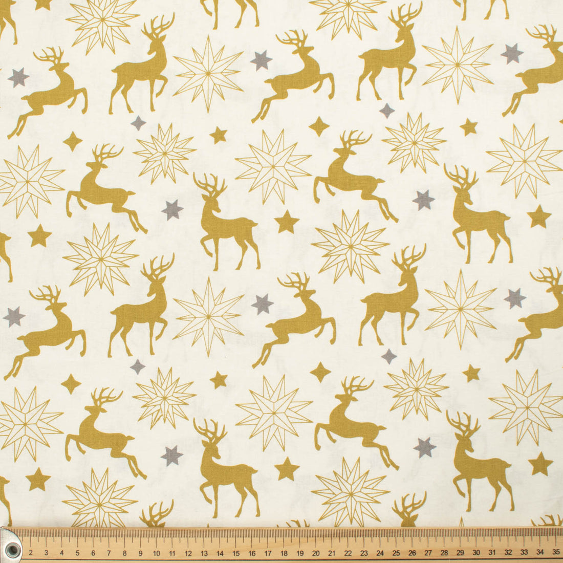 Christmas Collection Gold Stars & Reindeer on White Cotton Prints