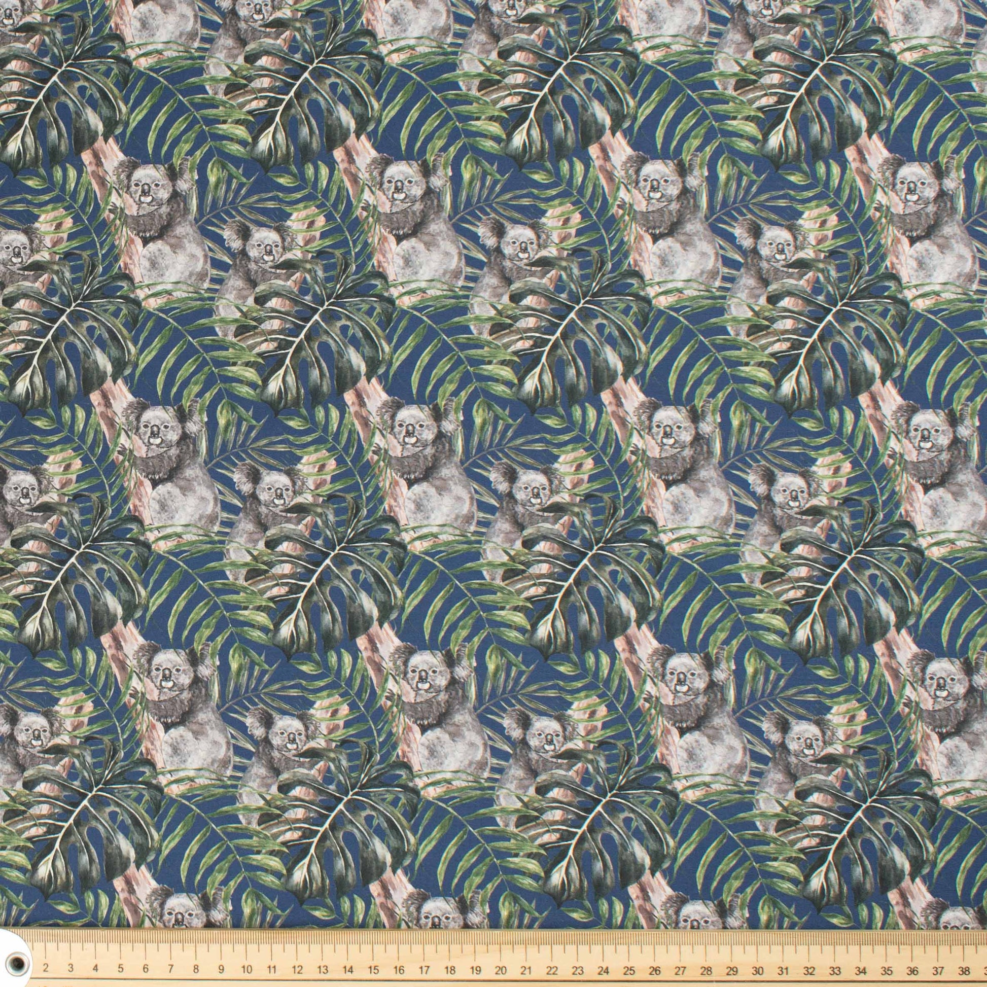 Australiana/Aboriginal Inspired Cotton Prints Design - Koala & Leaf on Navy