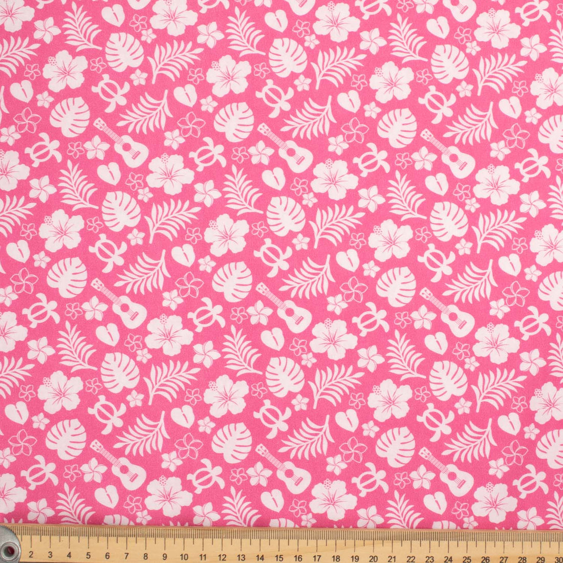 Hawaii Style Collection #09 Flower, Leaves, Sea Turtle & Guitar on Pink Cotton Prints