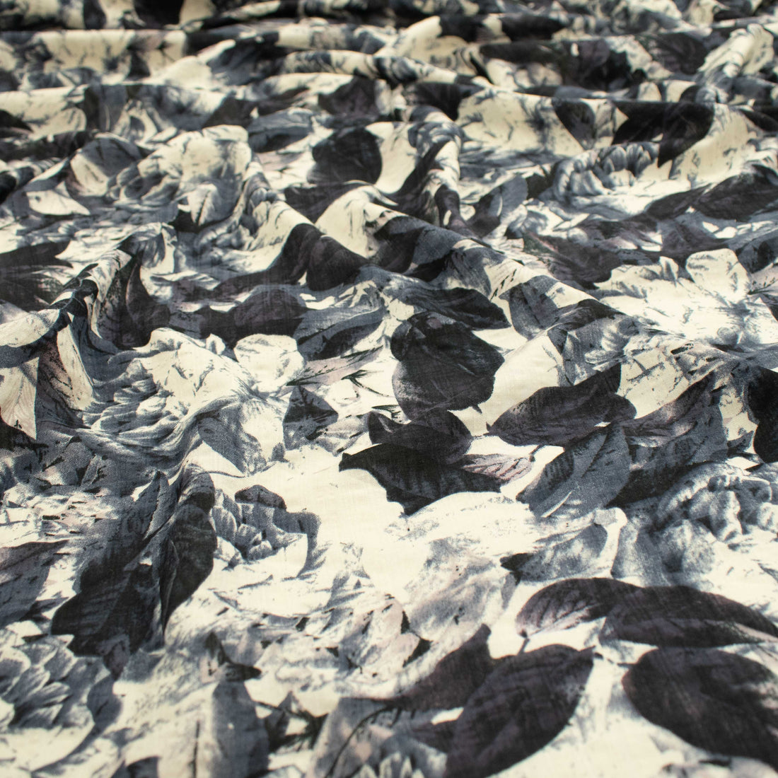 Crinkle Cotton Prints Design-9 Grey Flowers & Leaves