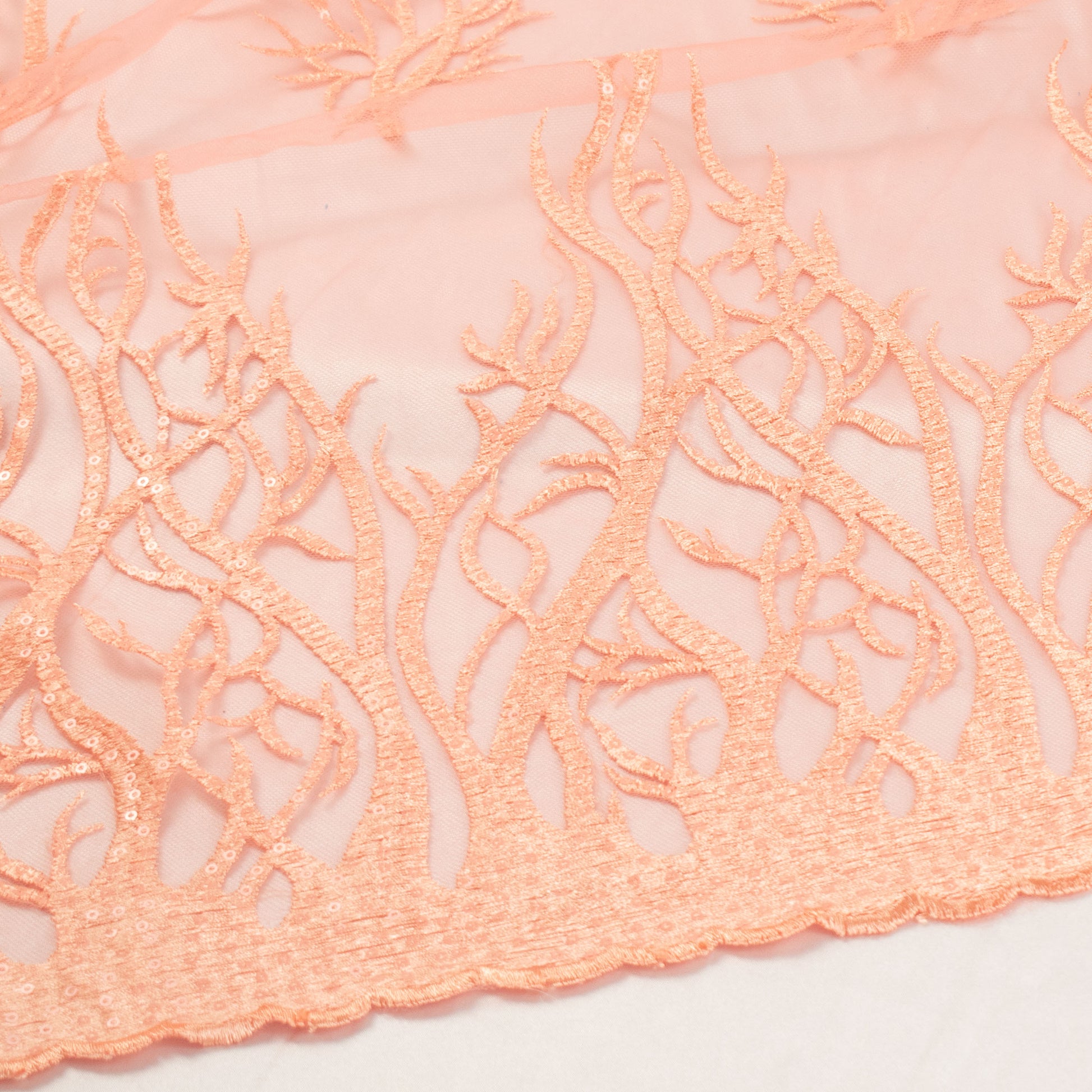 Sequin Coral Embroidered Lace Orange