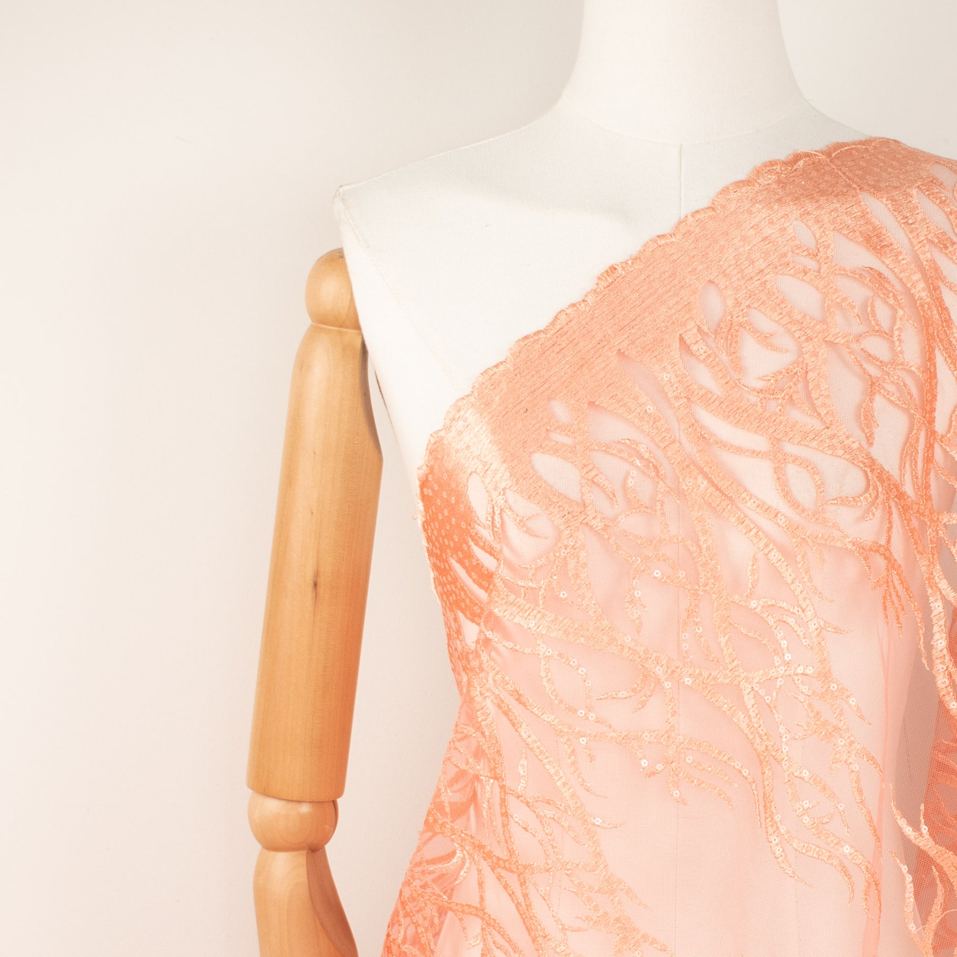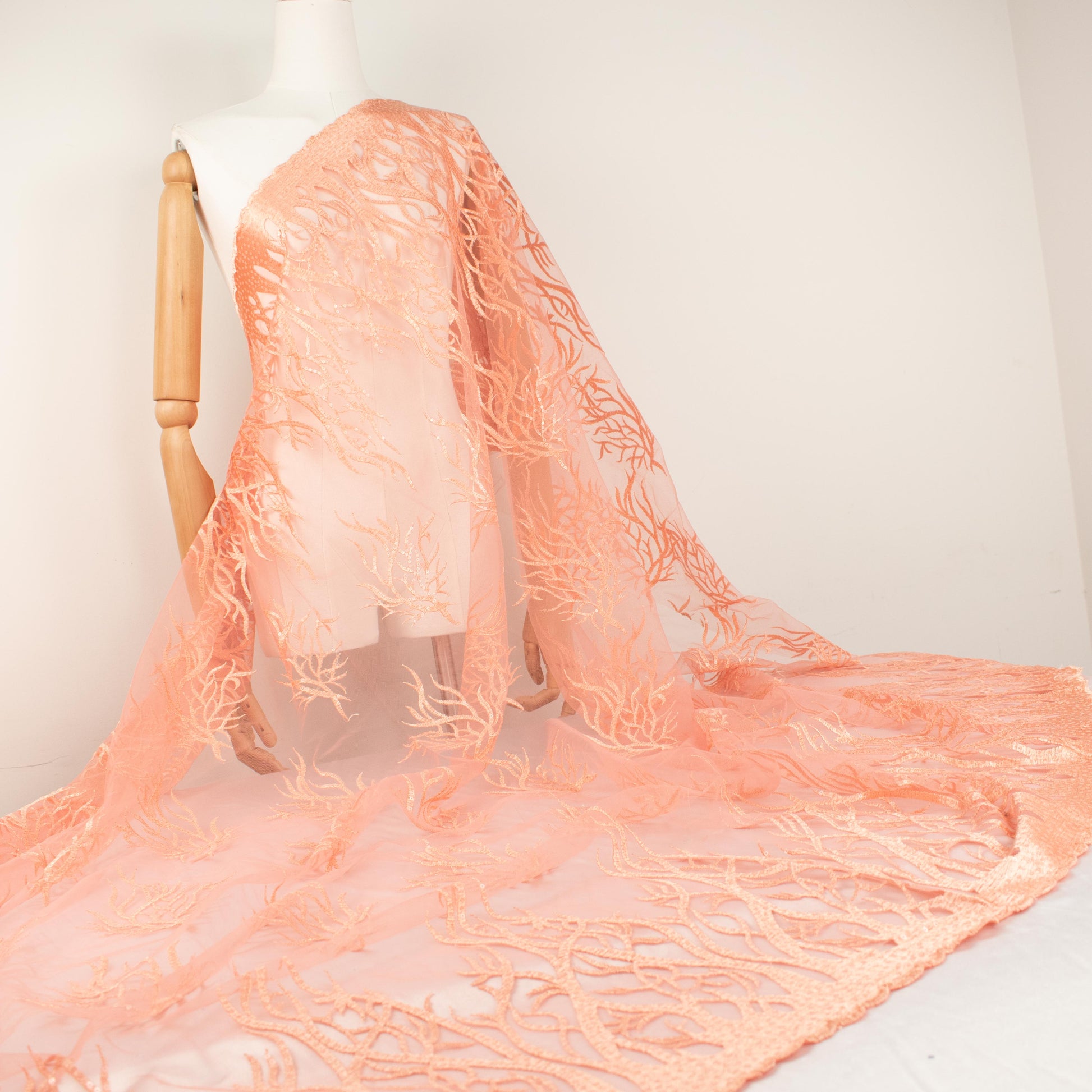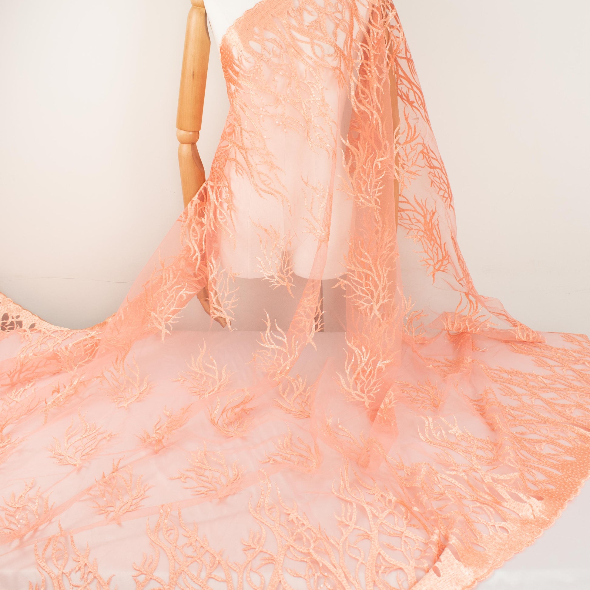 Sequin Coral Embroidered Lace Orange 130CM Wide