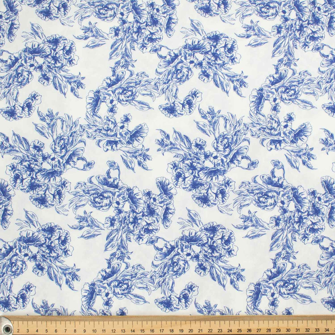 Victoria Blue Collection #02 Blue Sketch Victoria Life on White Cotton Prints