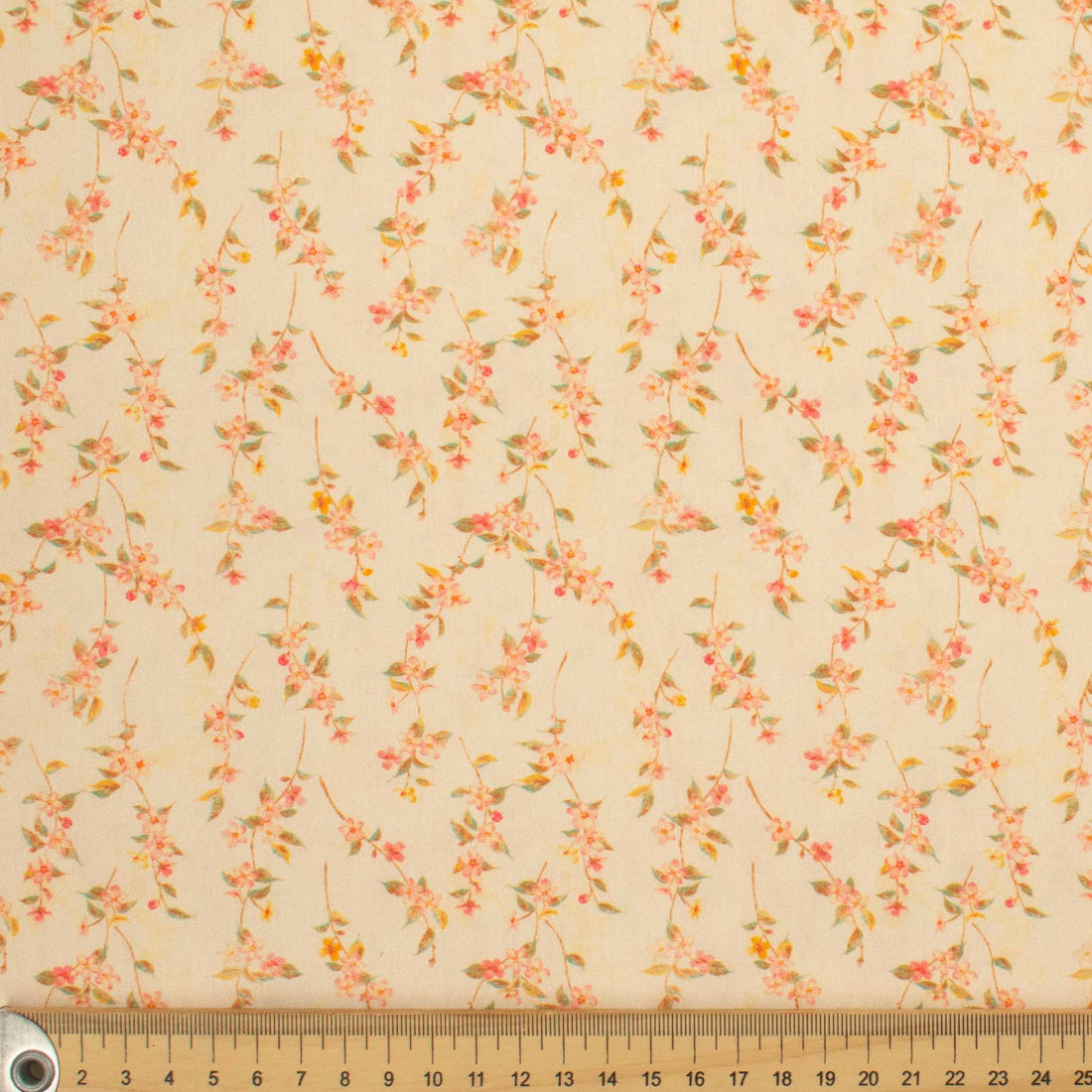 Ruby Red Collection #13 Small Pink Floral & Leaves on Pale Yellow Cotton Prints