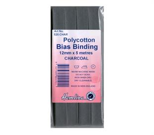 Hemline Polycotton Bias Binding - CHARCOAL 12MM X 5M
