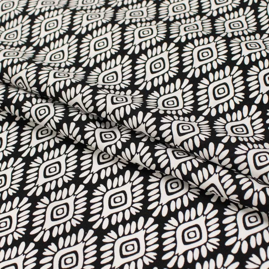 Rayon Poplin Prints Design-30 Black Tribal Diamond on White