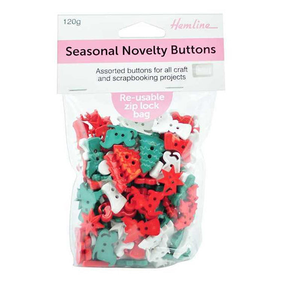 Seasonal Novelty Buttons 120g Assorted buttons for all craft and scrapbooking projects. Re-usable zip lock...