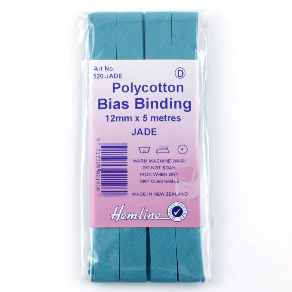 Hemline Polycotton Bias Binding - JADE 12MM X 5M