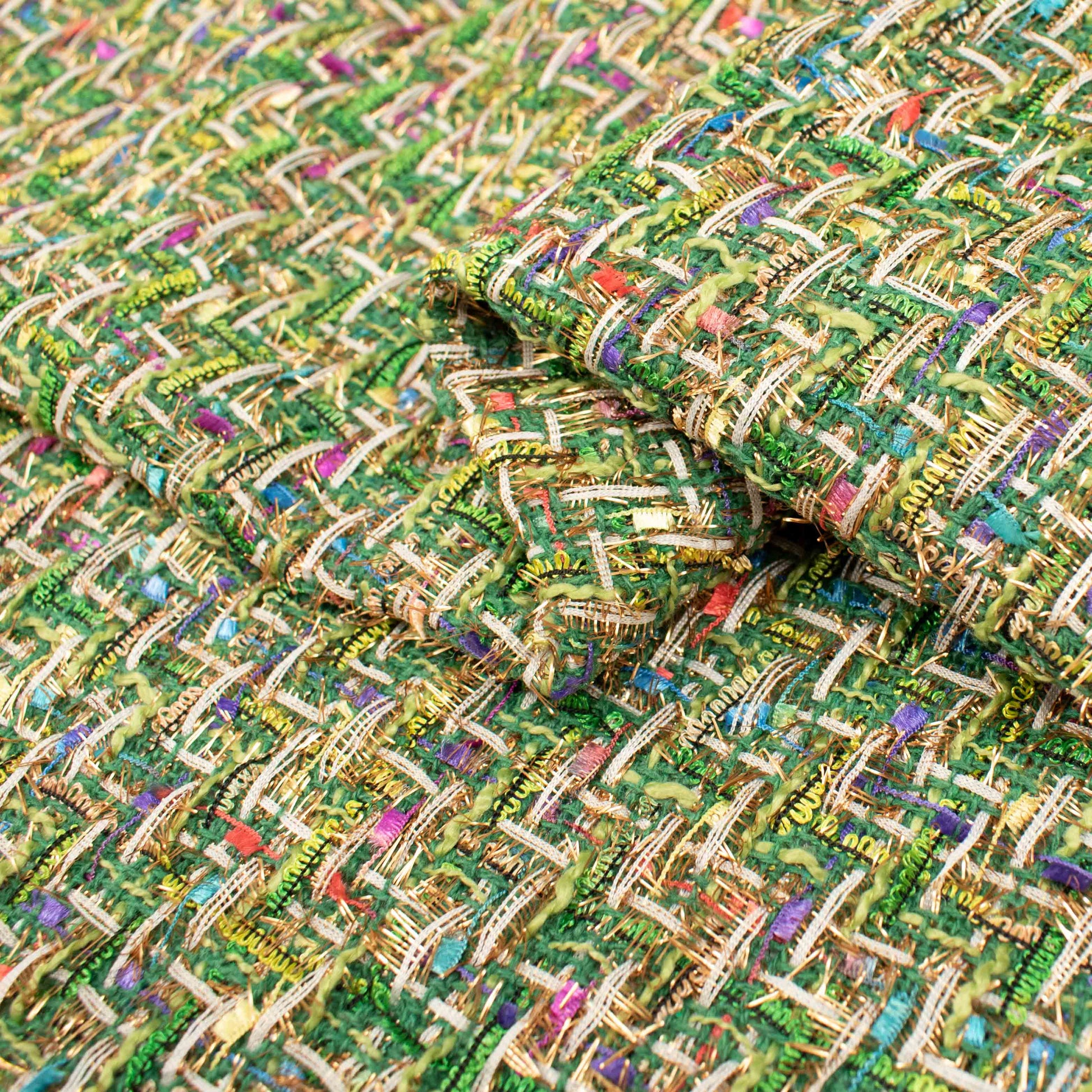 Our Boucle Tweed Suiting is a luxurious poly/wool blend that features timeless, textured Chanel-inspired knit patterns. This fabric is perfect for crafting cozy, comfortable, and stylish warm wear. It’s ideal for creating tailored coats, chic jackets, elegant capes, and structured skirts. Available in a wide variety of colors and patterns.
