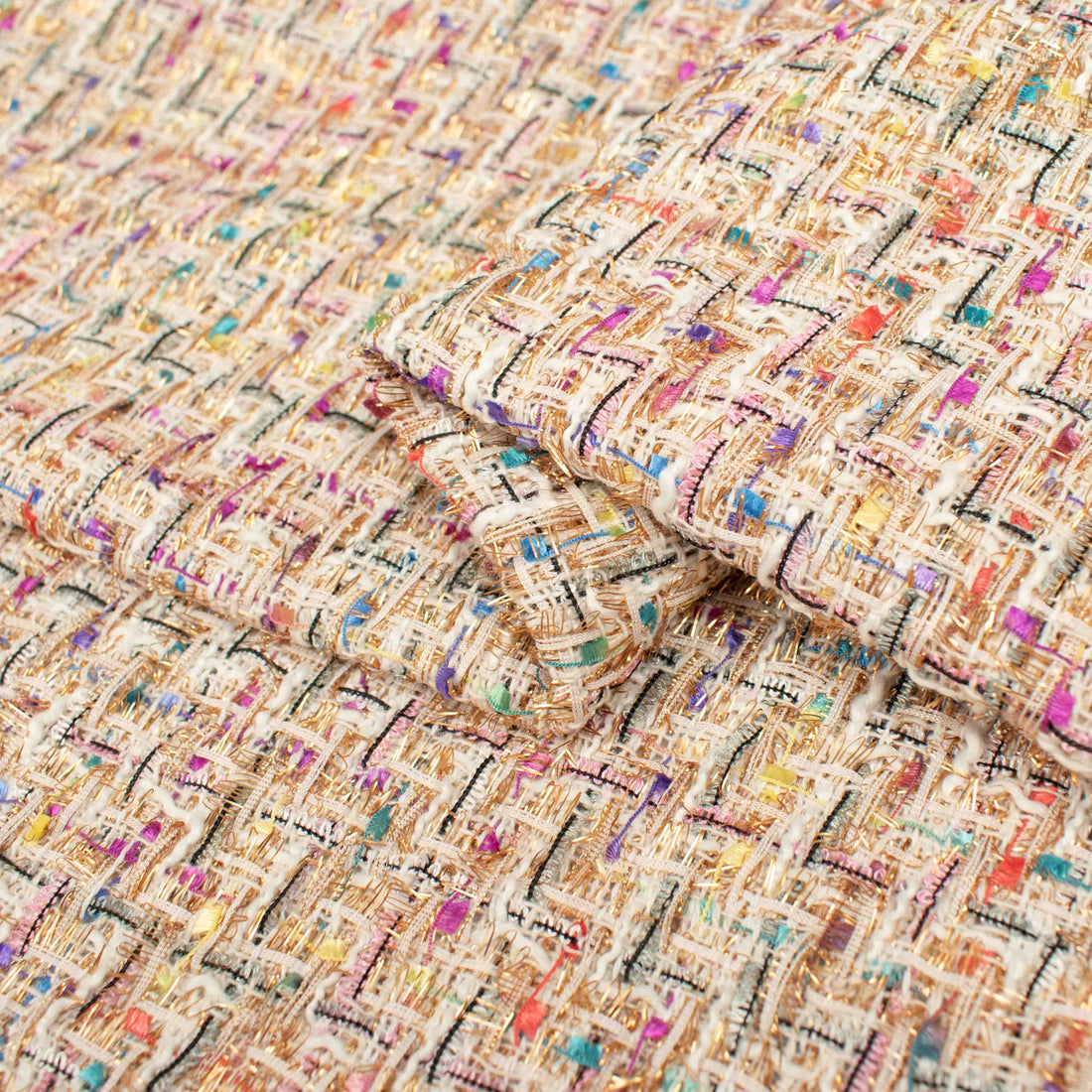 Content: Poly/Wool BlendWidth: 59”/150cmWeight: 360GSM Our Boucle Tweed Suiting is a luxurious poly/wool blend that features...