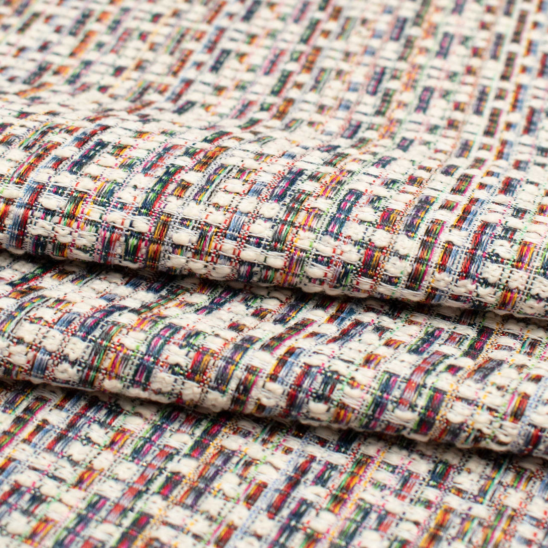 Content: Poly/Wool BlendWidth: 59”/150cmWeight: 360GSM Our Boucle Tweed Suiting is a luxurious poly/wool blend that features...