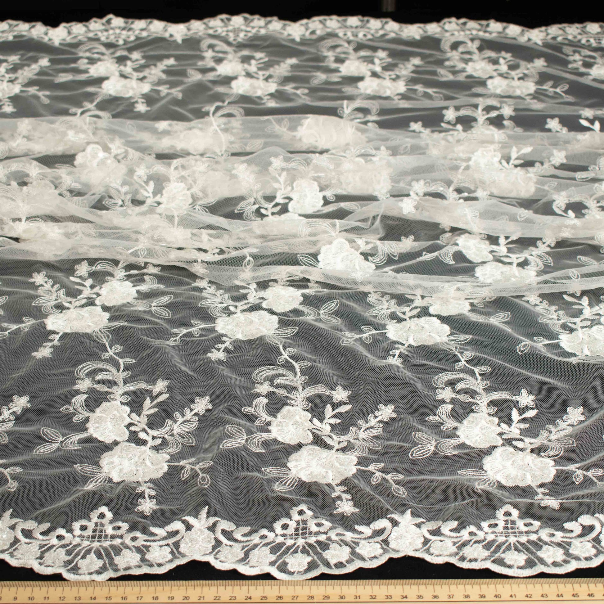 Our collection of couture laces has everything from light embroidered, glitter laces to beaded and sequinned designs. Perfect for bridal, cocktail, evening wear and for all your special occasions. Choose from basic bridal colours, muted golds and ivory to more vibrant shades of teal, burgundy, pink, royal blue or the more traditional black.