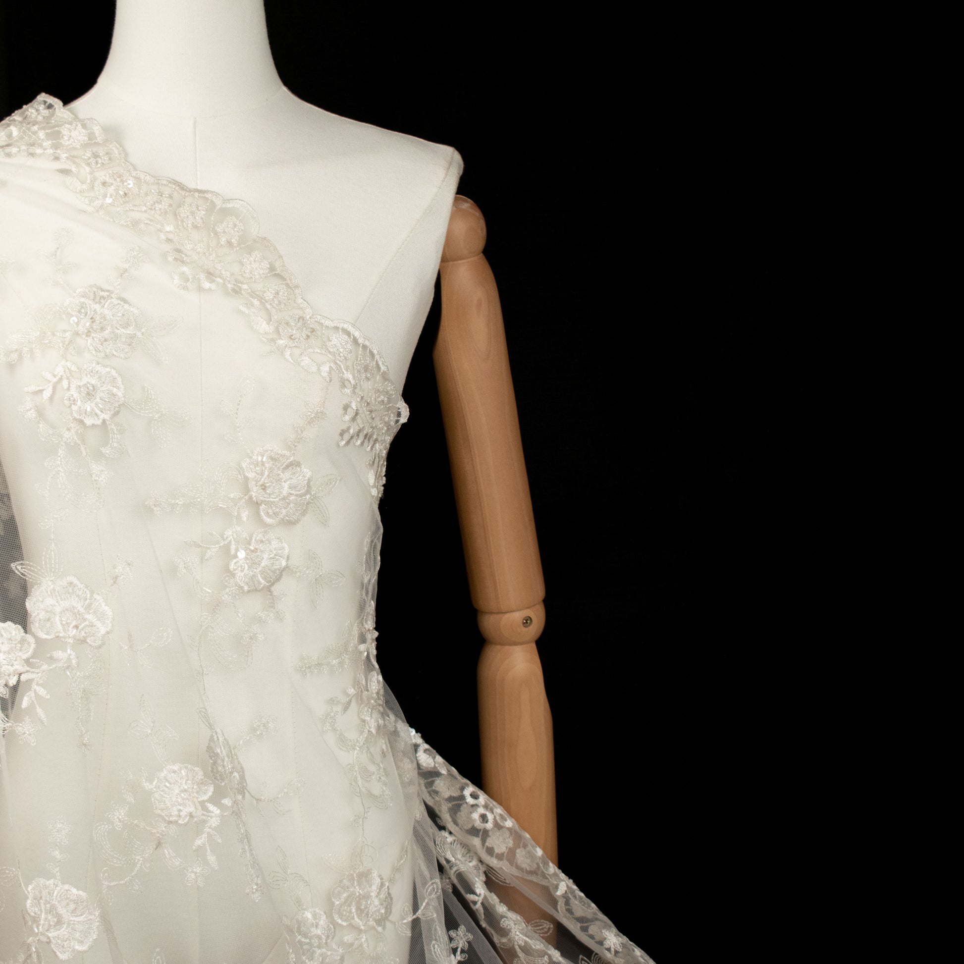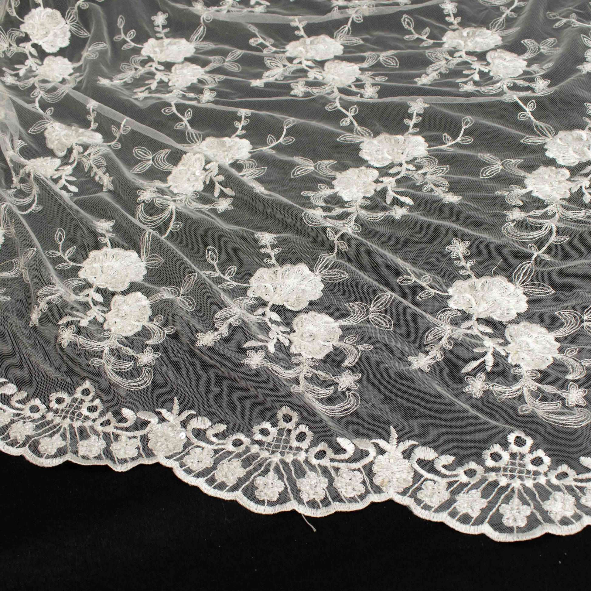 Beaded Embroidery Lace Natural White Design-26