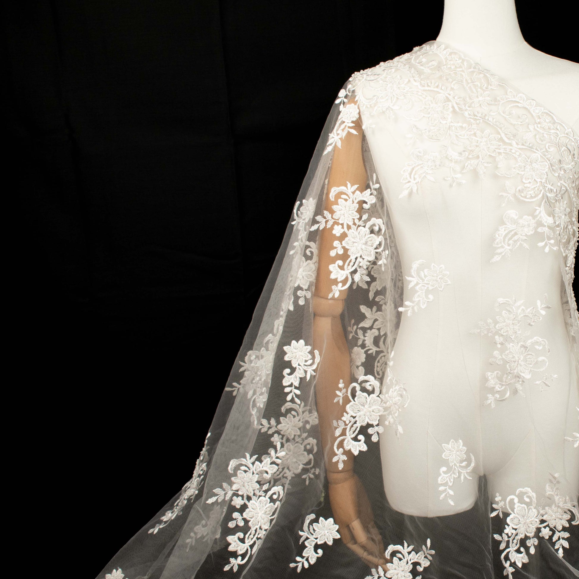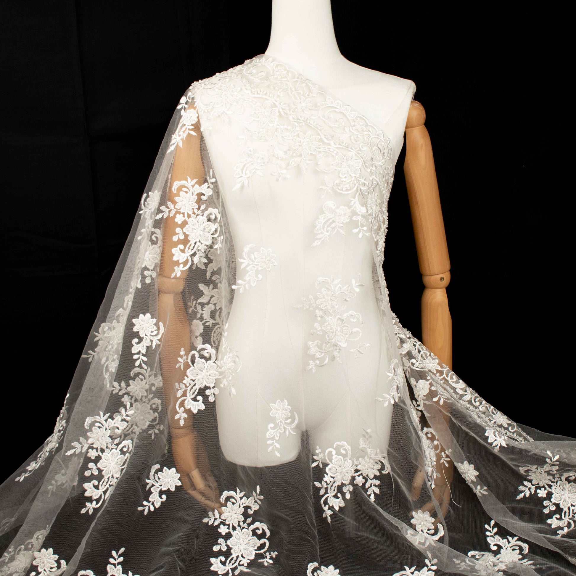Our collection of couture laces has everything from light embroidered, glitter laces to beaded and sequinned designs. Perfect for bridal, cocktail, evening wear and for all your special occasions. Choose from basic bridal colours, muted golds and ivory to more vibrant shades of teal, burgundy, pink, royal blue or the more traditional black.