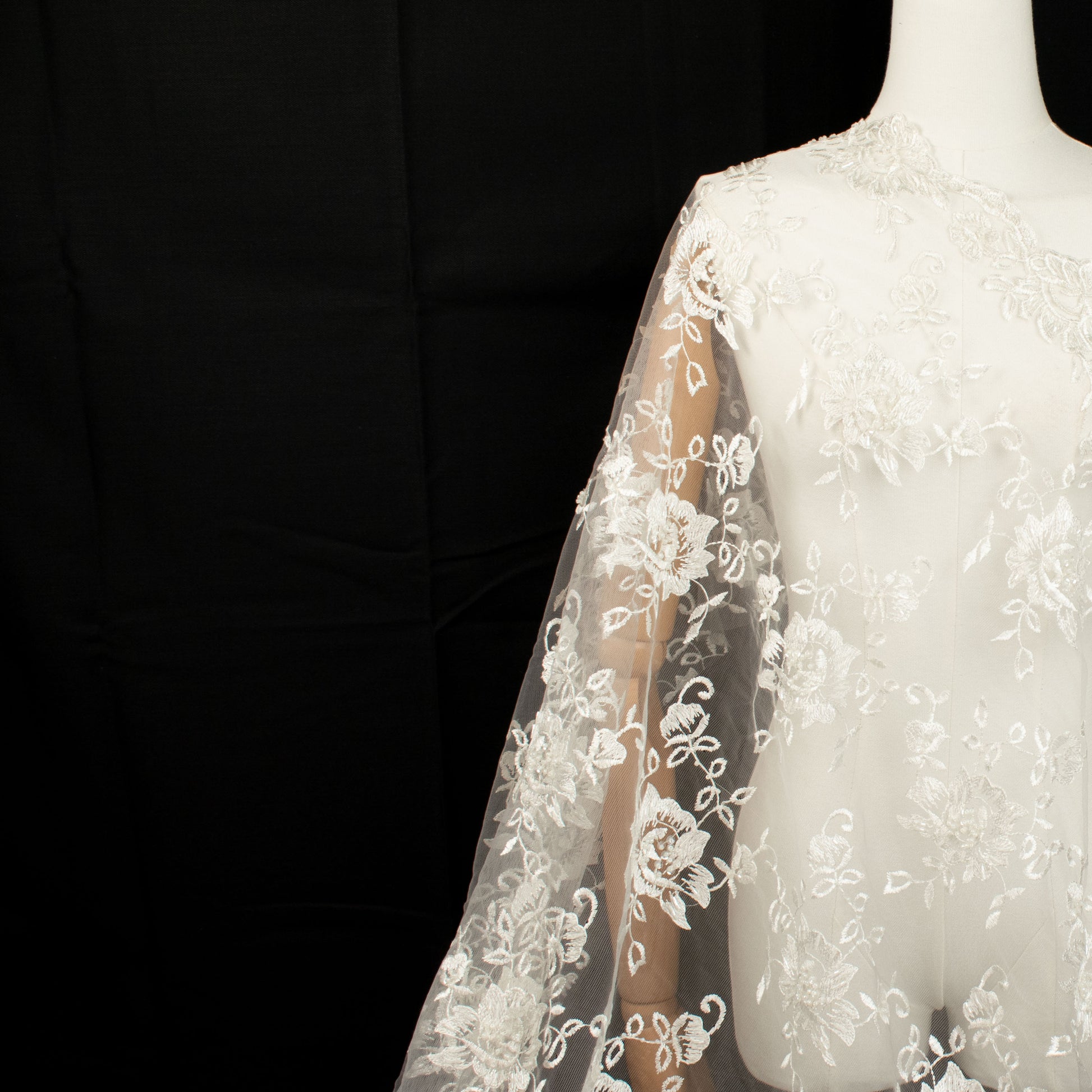 Our collection of couture laces has everything from light embroidered, glitter laces to beaded and sequinned designs. Perfect for bridal, cocktail, evening wear and for all your special occasions. Choose from basic bridal colours, muted golds and ivory to more vibrant shades of teal, burgundy, pink, royal blue or the more traditional black.