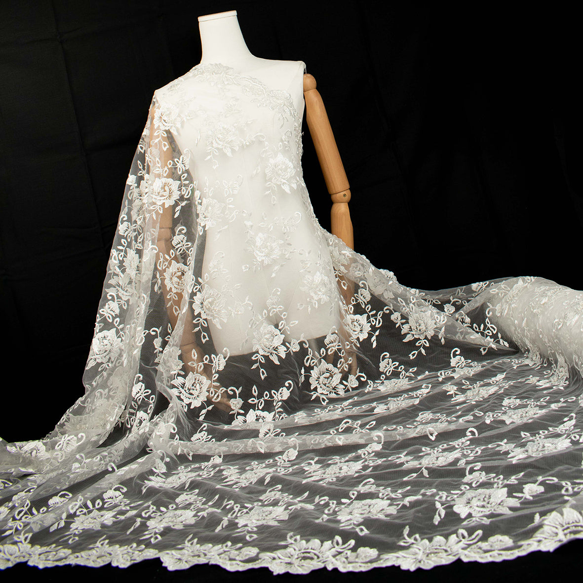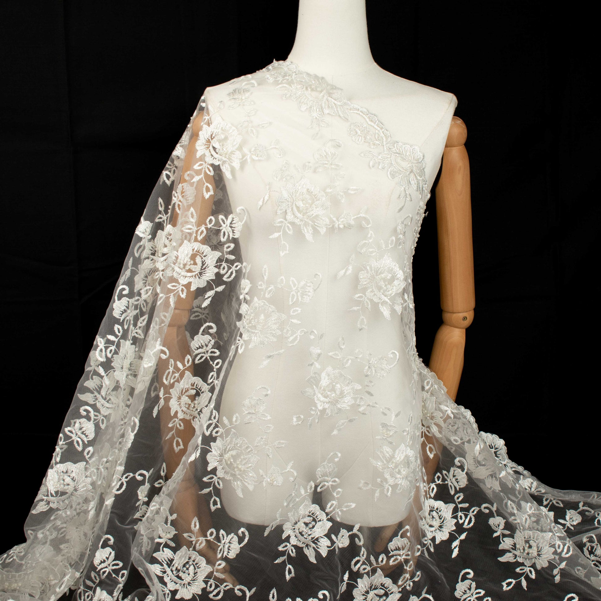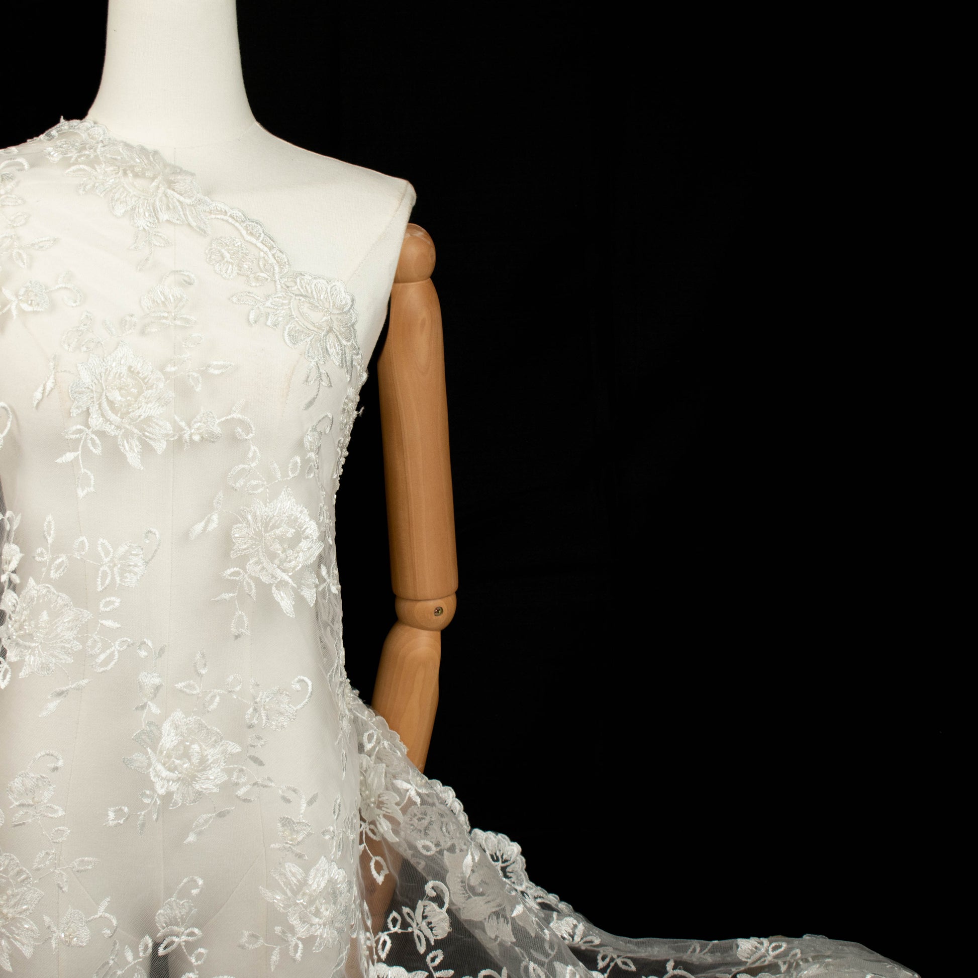 Our collection of couture laces has everything from light embroidered, glitter laces to beaded and sequinned designs. Perfect for bridal, cocktail, evening wear and for all your special occasions. Choose from basic bridal colours, muted golds and ivory to more vibrant shades of teal, burgundy, pink, royal blue or the more traditional black.