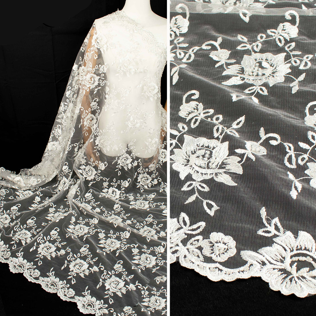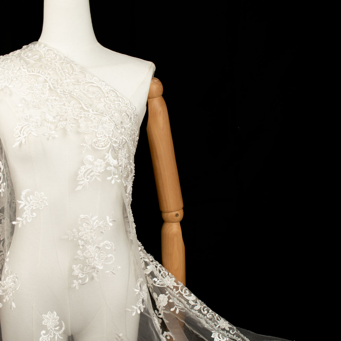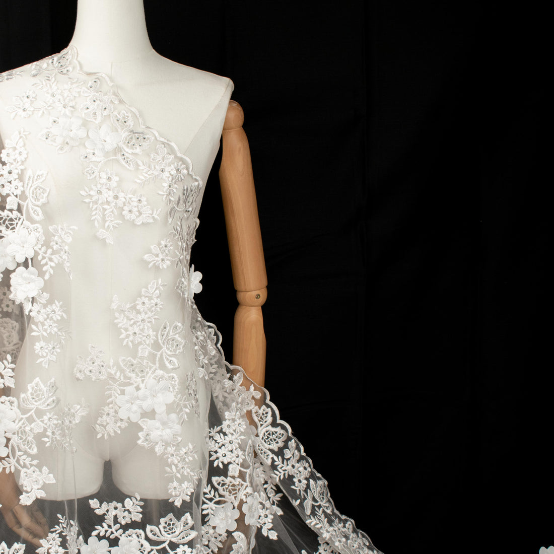 Embroidery Beaded Lace White $129.99/M Width: 130CMPriced per 25cm. For example to order 2 meters...