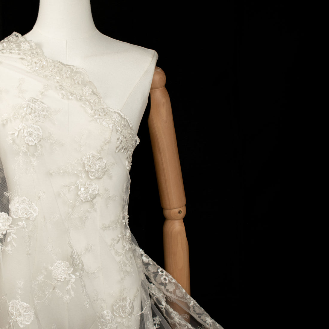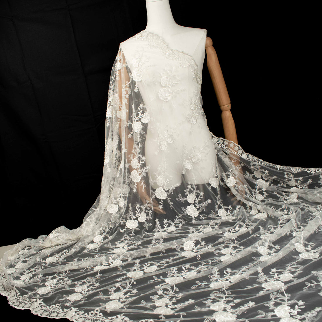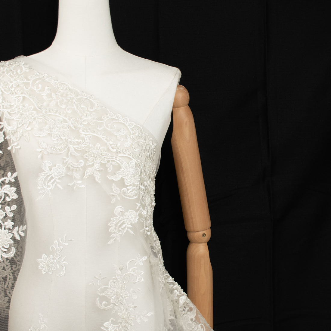 Beaded Embroidery Lace Ivory $129.99/M Width: 130CMPriced per 25cm. For example to order 2 meters...