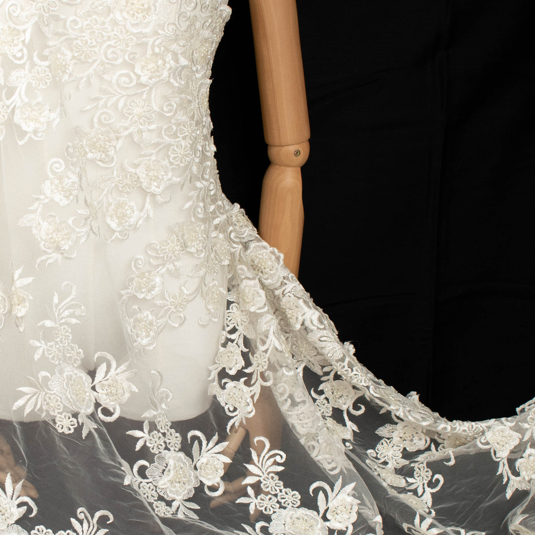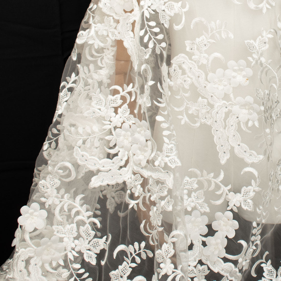 3D Flower Pearl Diamanta Embroidered Lace Ivory Design-7