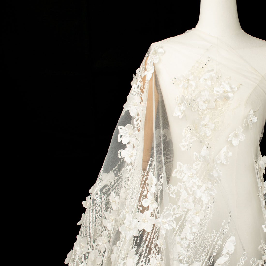 3D Flower Pearl Embroidery Lace White $89.99/M Width: 150CMPriced per 25cm. For example to order...