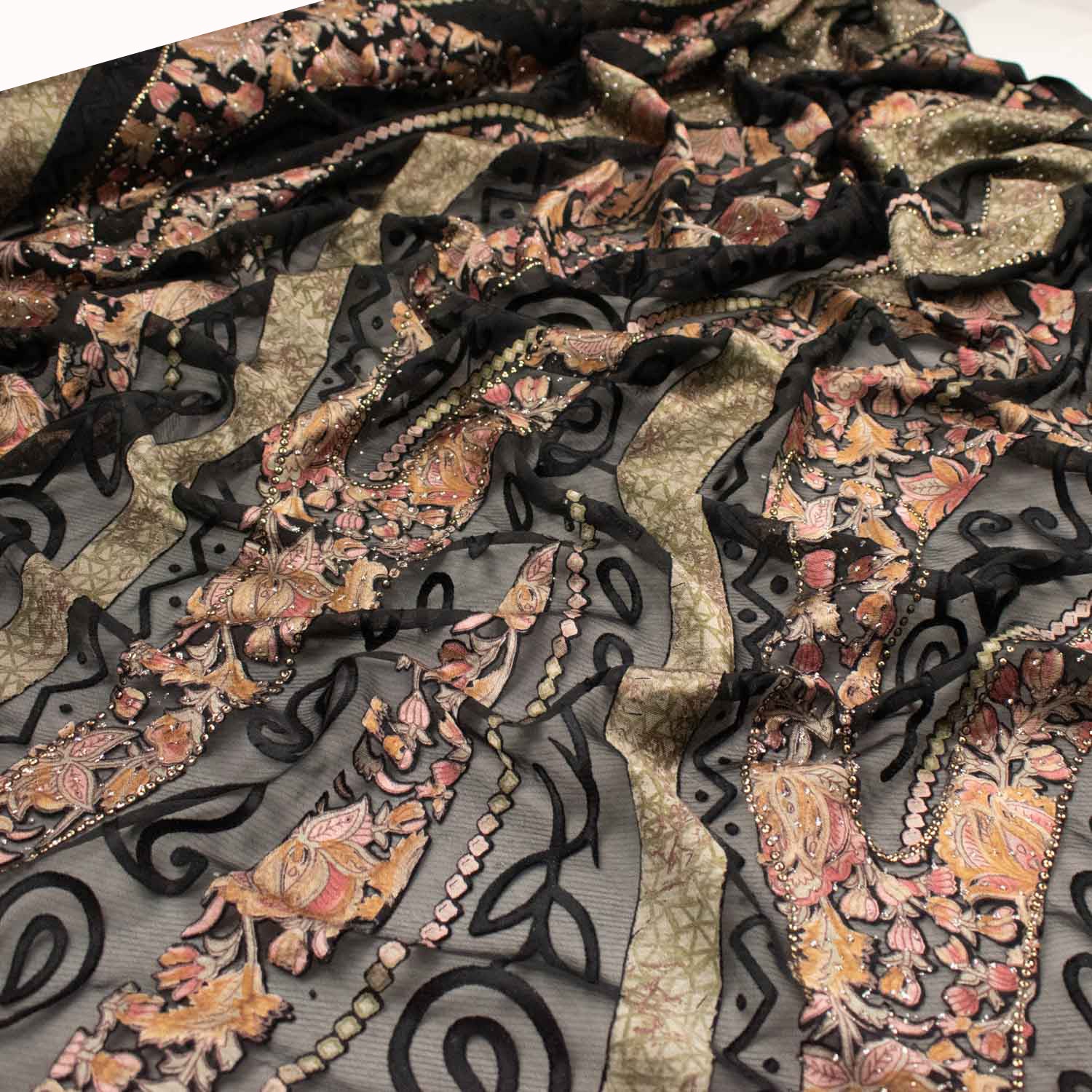 Our Printed Burnout Chiffon, available in 112cm and 135cm widths, is a light and airy fabric featuring intricate burnout designs. This semi-sheer chiffon showcases a range of striking prints, including floral, geometric circles, and paisley patterns. The burnout technique creates a delicate interplay of sheer and opaque areas, adding texture and dimension to the fabric. Ideal for creating elegant dresses, blouses, scarves, and eveningwear, this chiffon drapes beautifully, making it perfect for layering or statement pieces that require both sophistication and comfort.