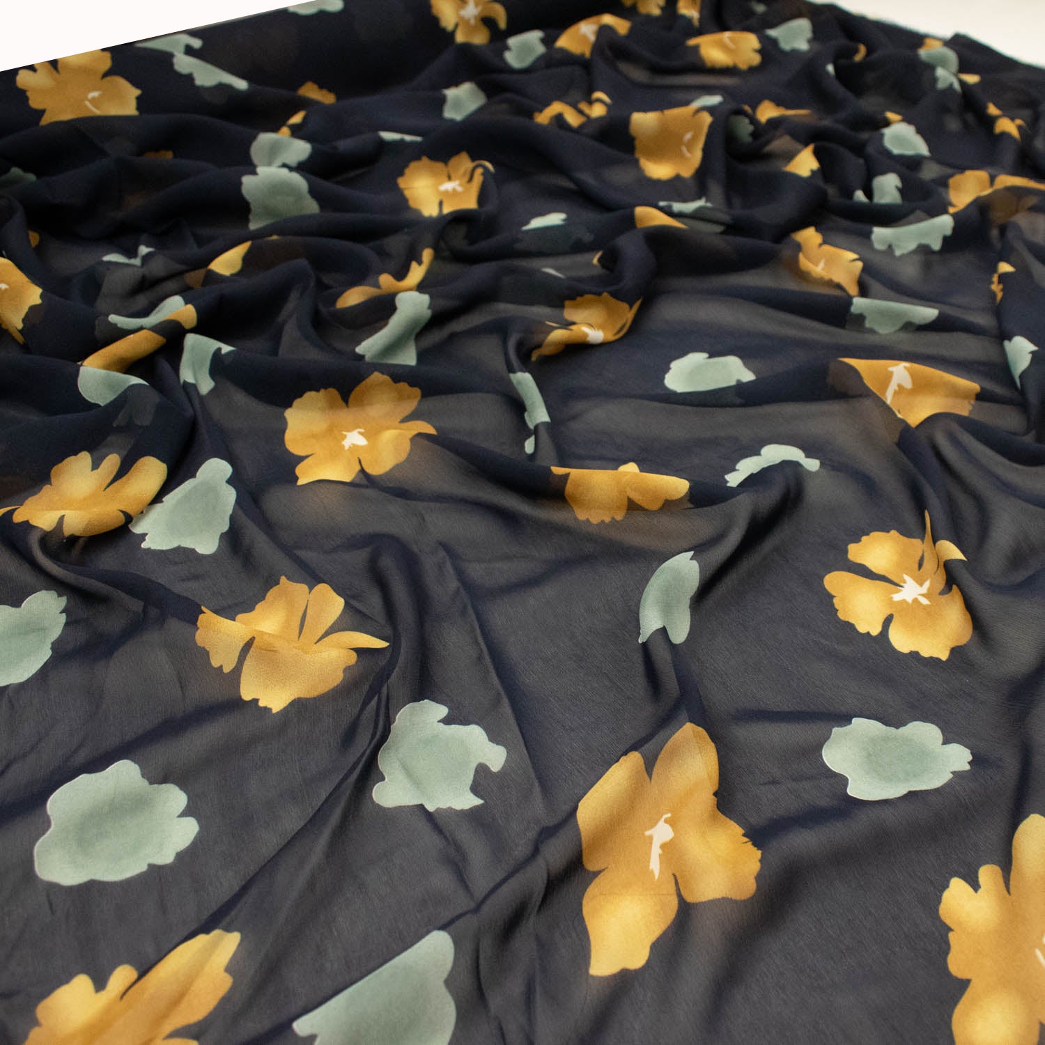 Elevate your style with our Printed Chiffon fabric. This blend of softness and artistry features floral sheer chiffon, perfect for adding elegance to any design. Lightweight, graceful, and uniquely beautiful, it is perfect for creating skirts, dresses, and shirts in the summer.