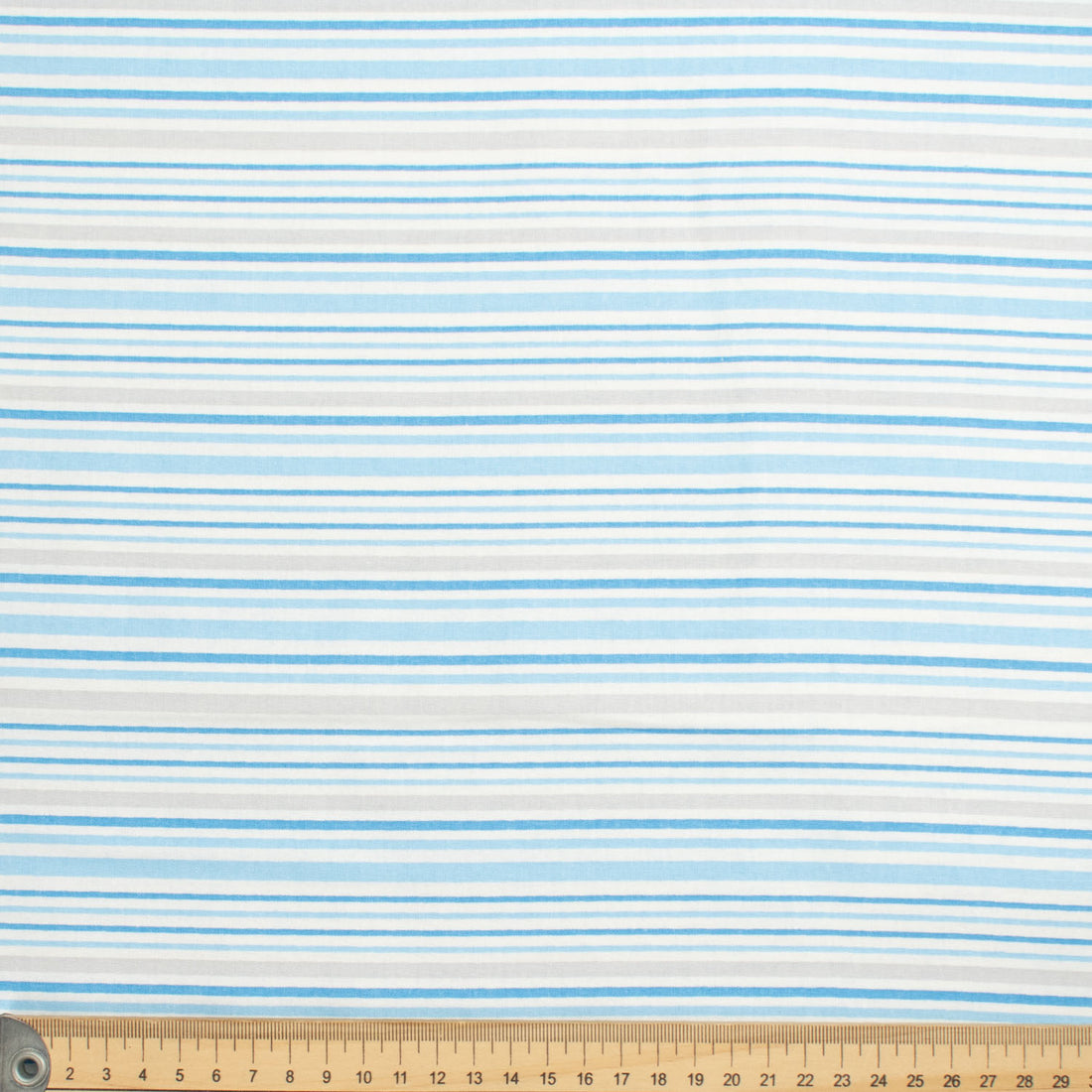 Classic Check & Stripe Collection Sky Blue & Grey Stripes on White Cotton Prints