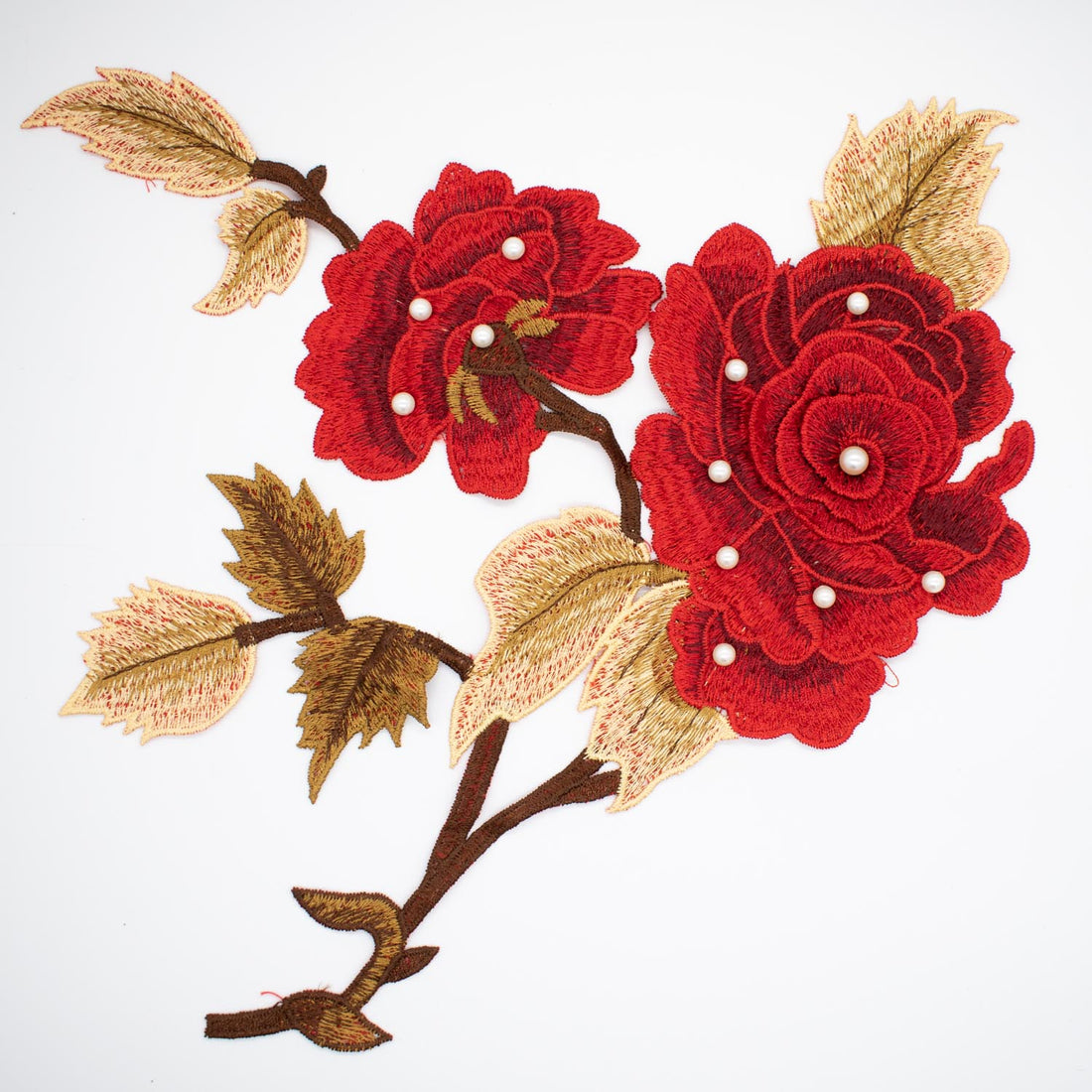 Red Flower & Pearl Embroidered Applique Motif Design-I-44