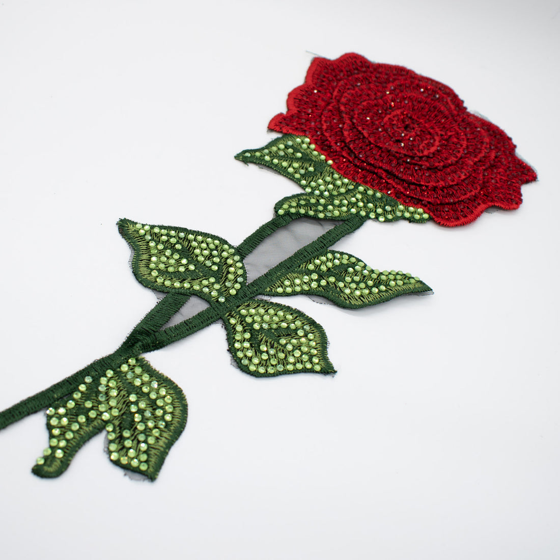 3D Red Rose Flower & Diamante Embroidered Applique Motif Design-I-43