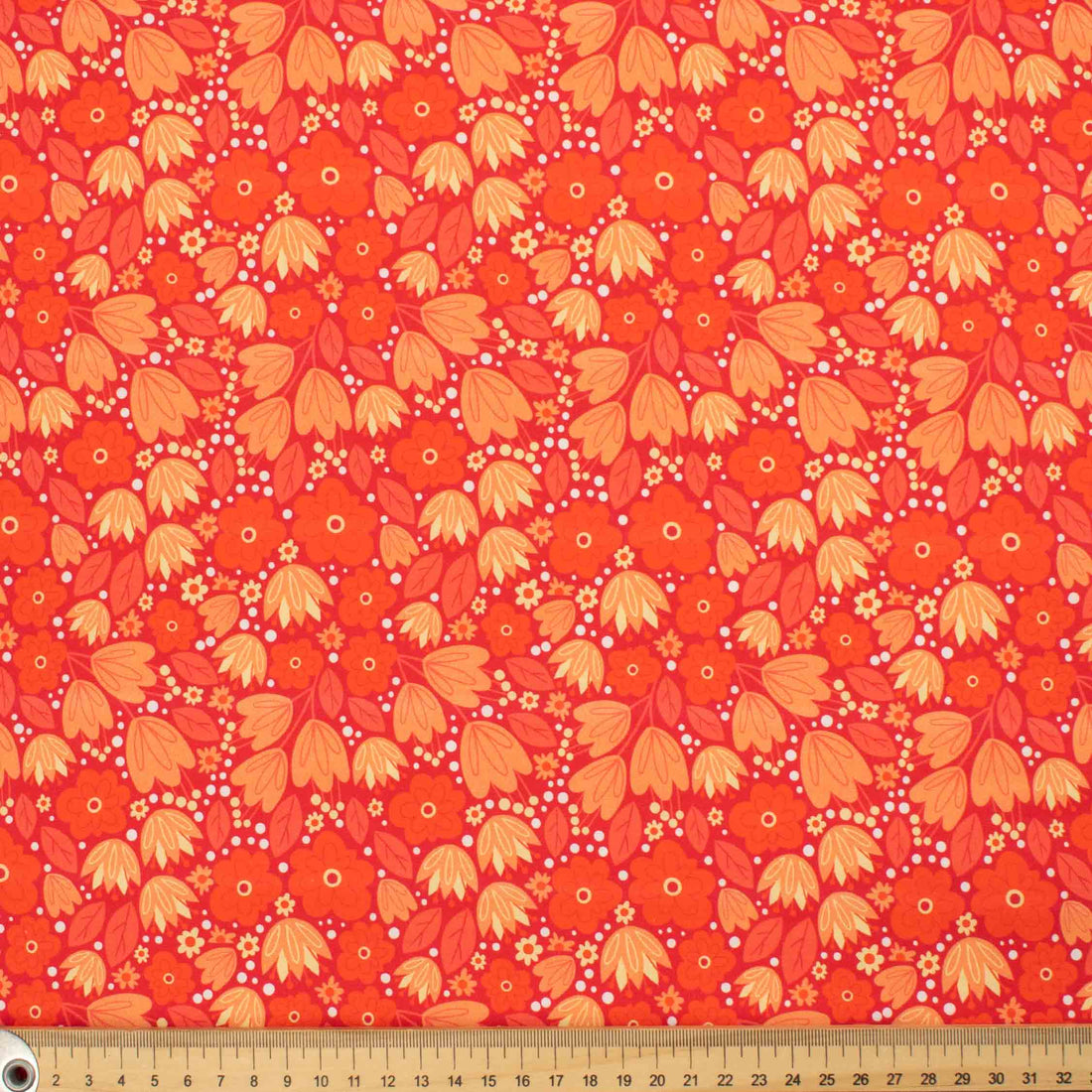 Country Side Collection #17 Red Flower & Orange Leaves Cotton Prints