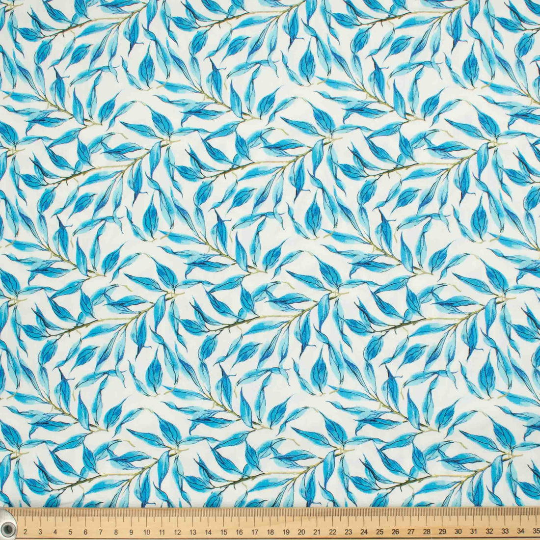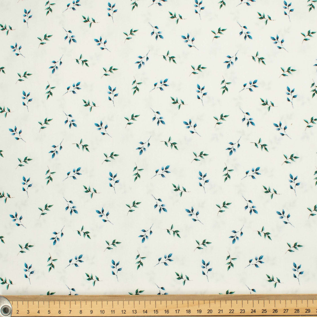 Country Side Collection #18 Blue Leaves on White Cotton Prints