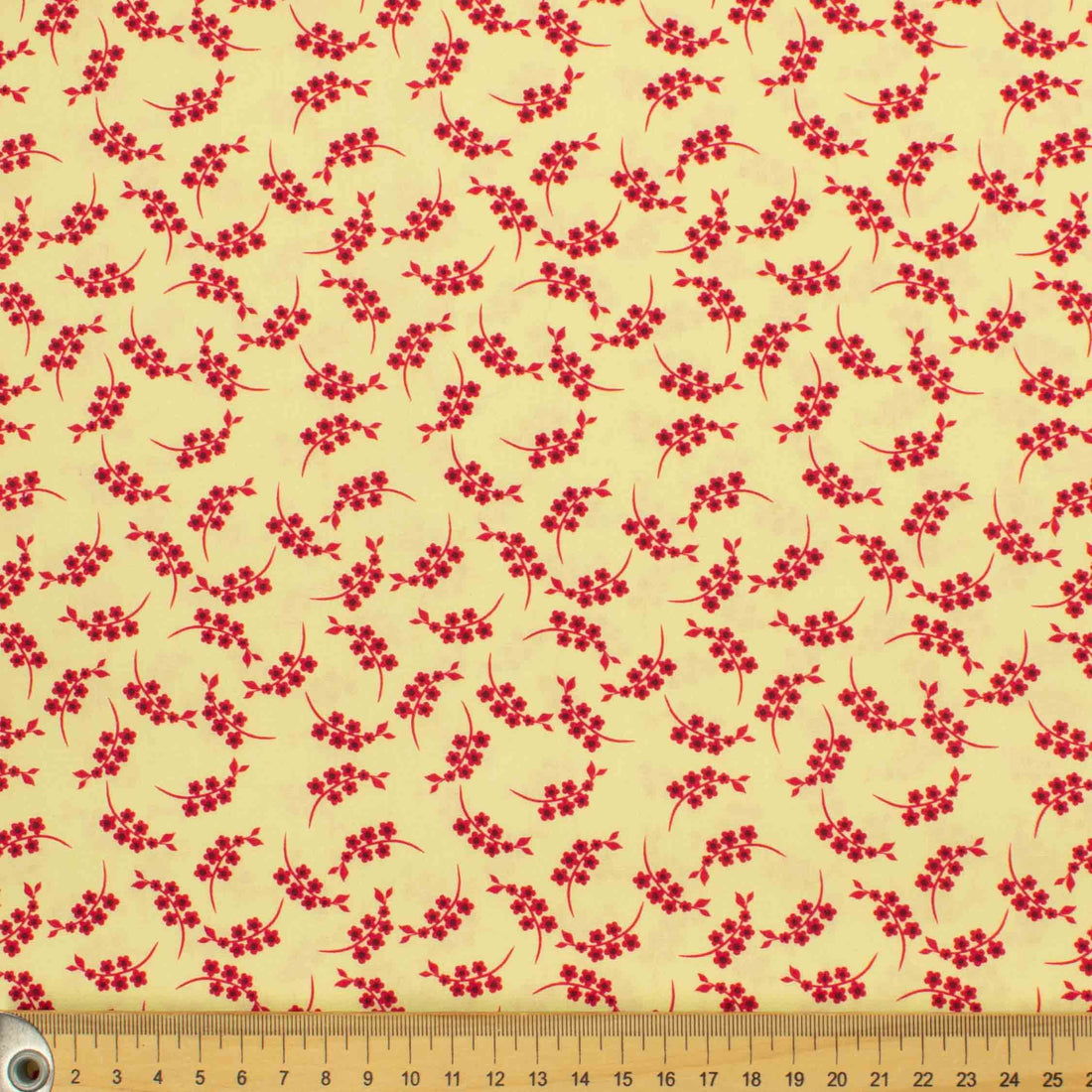 Country Side Collection #15 Red Small flower on Yellow Cotton Prints