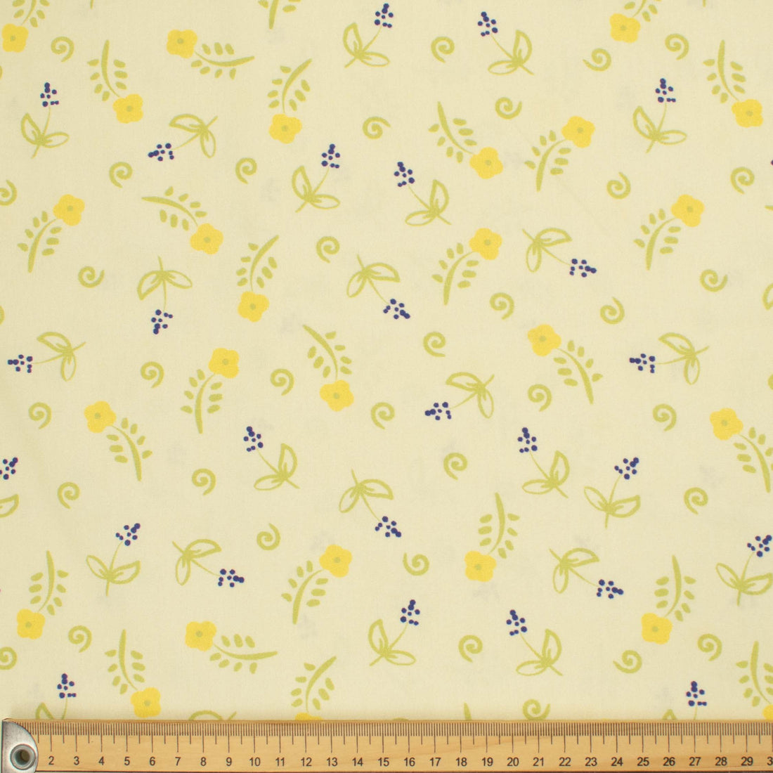 Country Side Collection #06 Blue & Yellow Cartoon Flower on Cream Cotton Prints