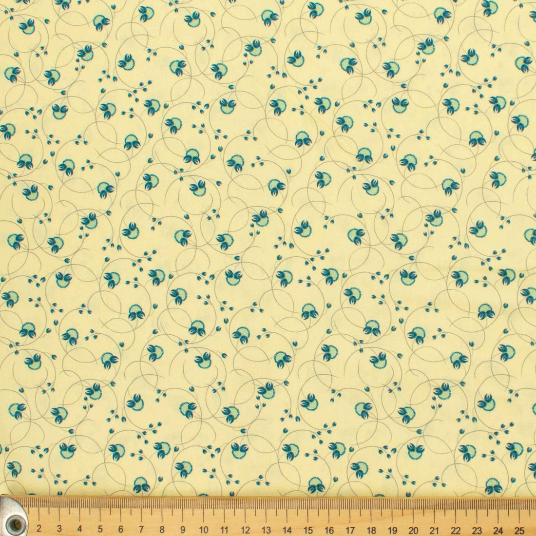 Country Side Collection #19 Blue Geometric Floral on Pale Yellow Cotton Prints