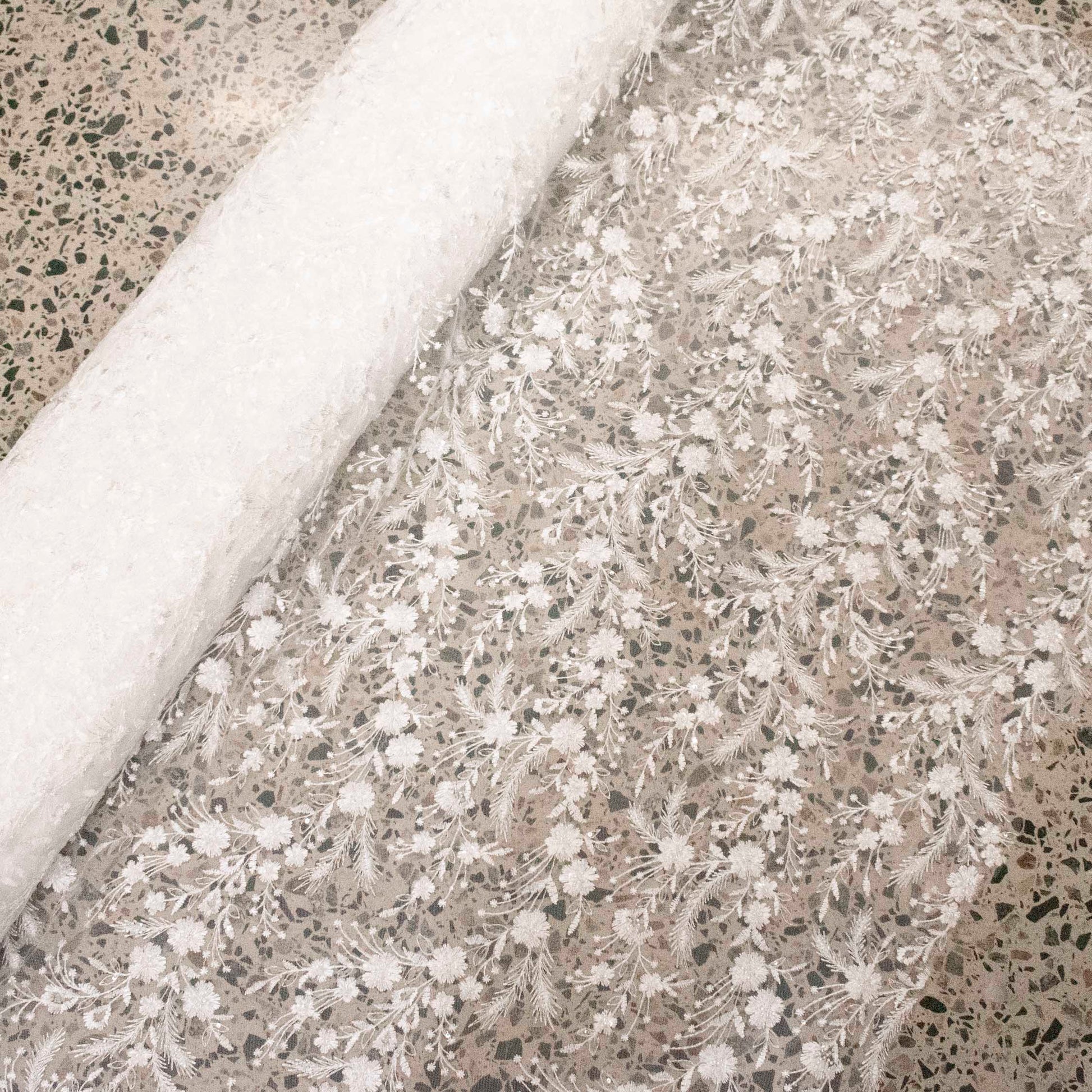 Light Weight Embroidered Couture Bridal Laces – DR23 White Floral Vines