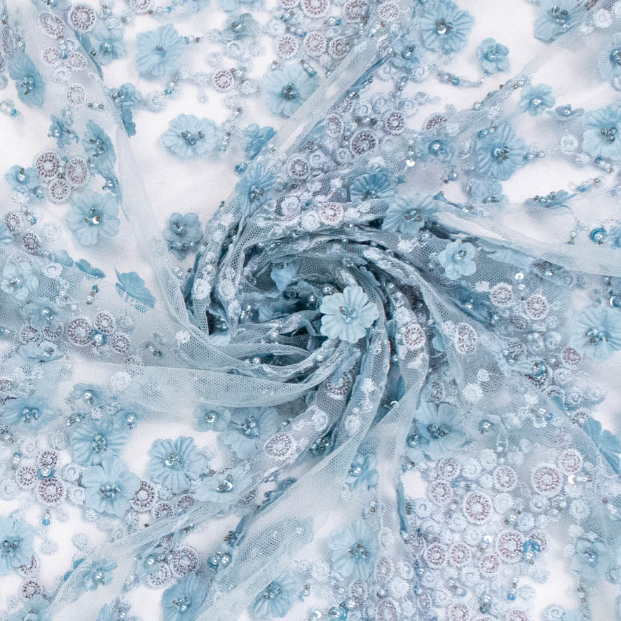 Pathan Collection Embroidered Couture Laces – Design-1226 Baby Blue 3D Flowers