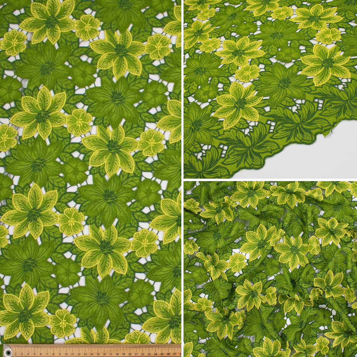 Exude elegance and sophistication with our Premium Heavy Floral Embroidered Guipure Lace. This premium-quality lace features an exquisite floral pattern, intricately embroidered onto a sheer yet durable guipure base. The detailed embroidery creates a rich, dimensional effect, adding depth and texture to your designs. With a scalloped edge finish, this fabric is perfect for statement dresses, evening gowns, bridal wear, and high-end fashion pieces. Whether you're creating a stunning wedding ensemble, couture dress, or luxury overlay, this lace is sure to elevate your creations with a touch of refined beauty.