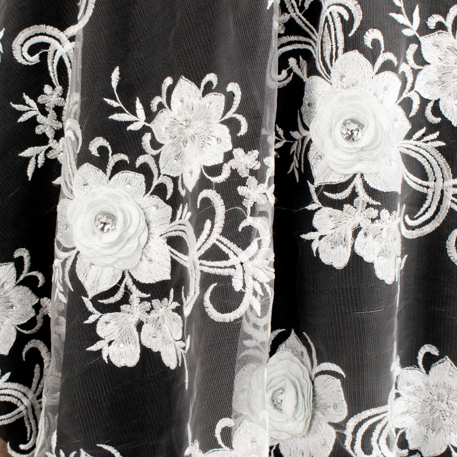 3D Flower with Gemstone Jewel Lace White Design-3