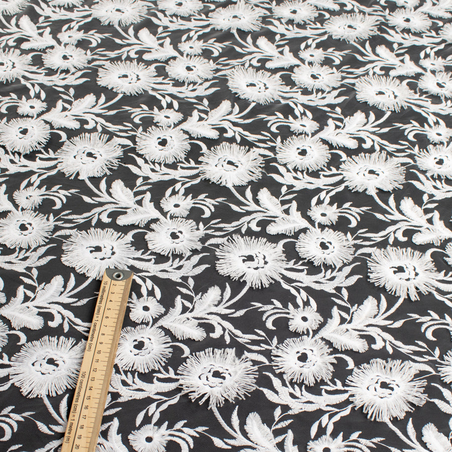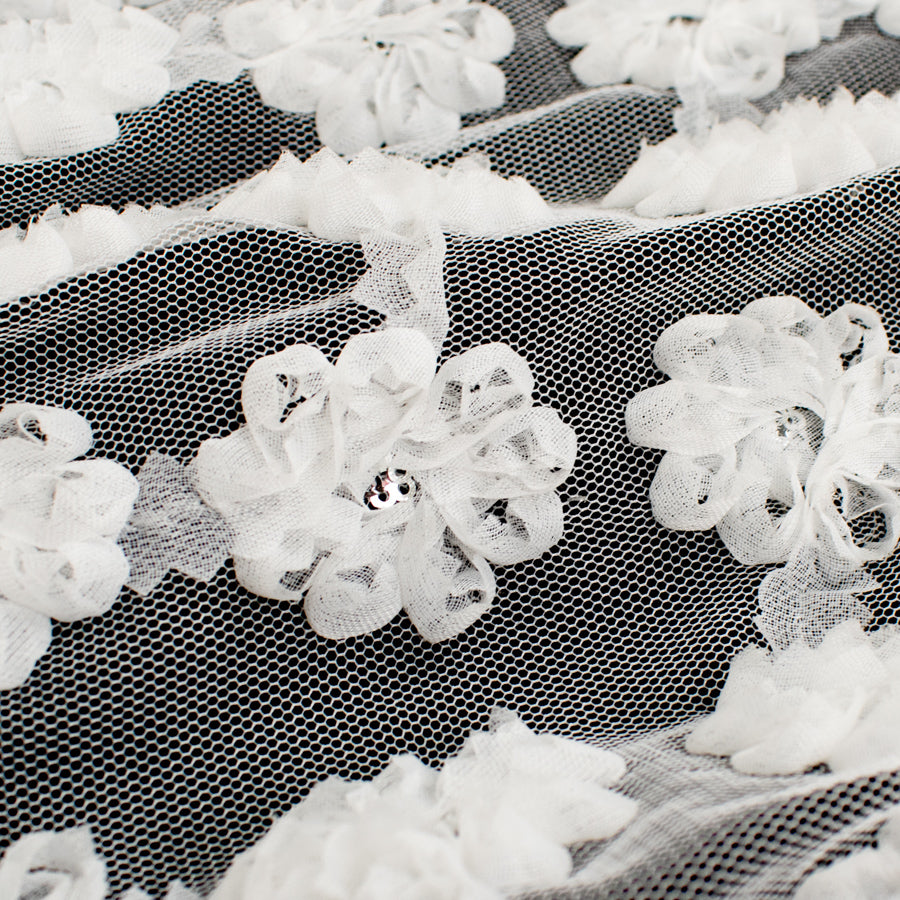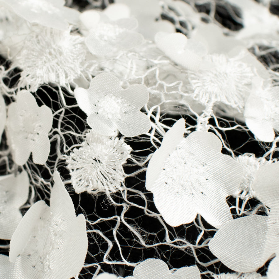 3D Flower on Spider Mesh Lace White
