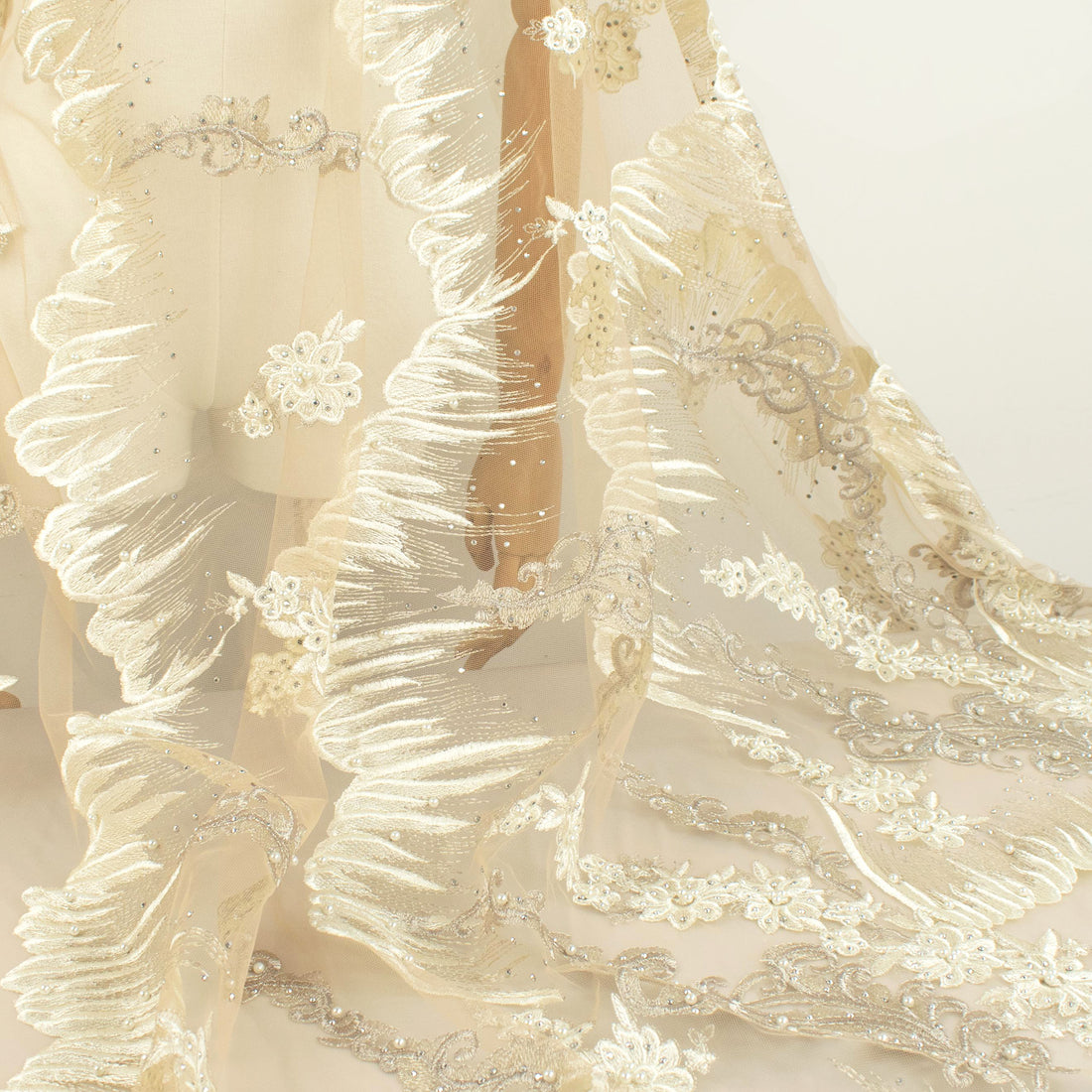 Pearl Diamante Embroidery Lace White 130CM Wide $129.99/MPriced per 25cm. For example to order 2 meters...