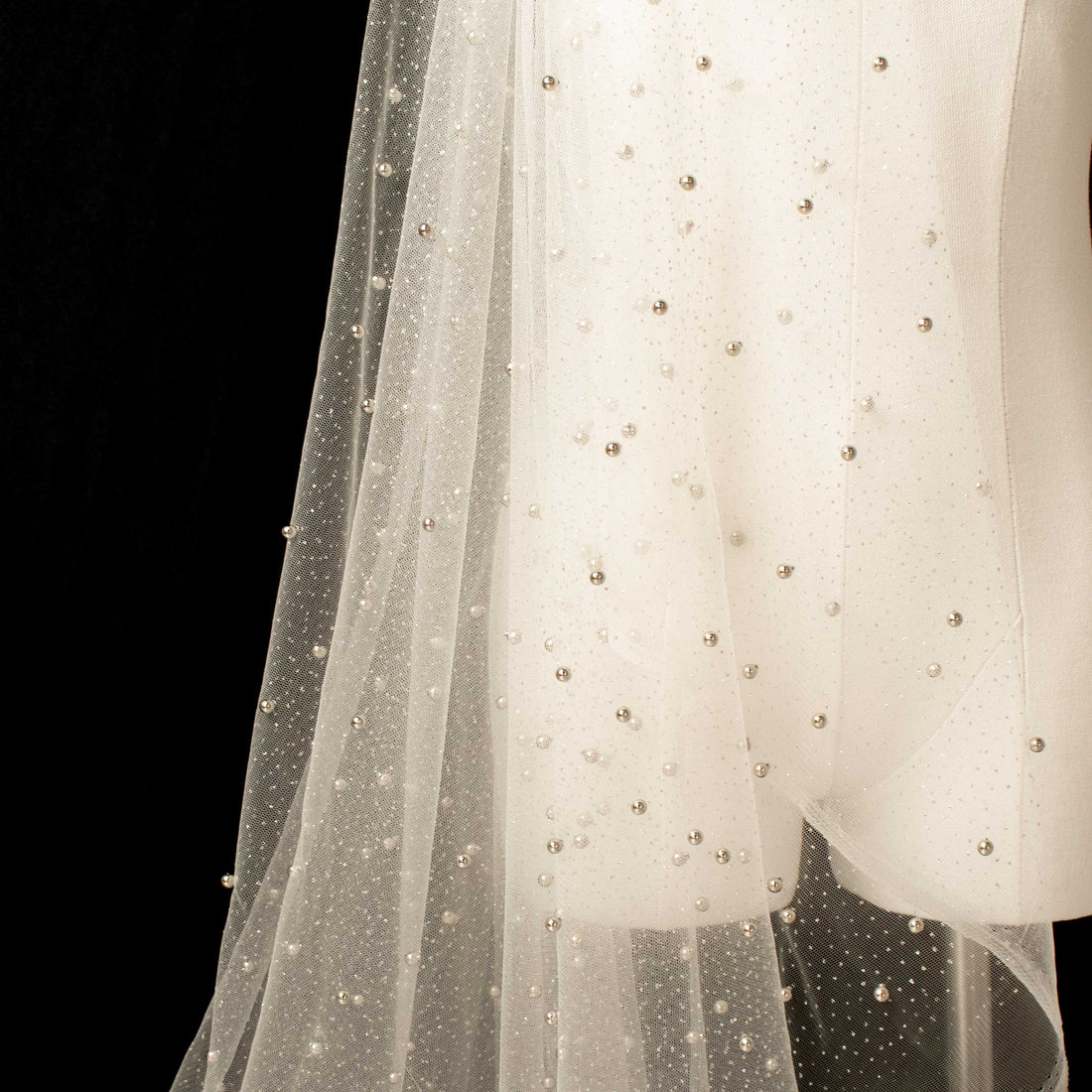 Width: 150CM A soft, fine textured glitter tulle netting with tiny pearls attached for those...