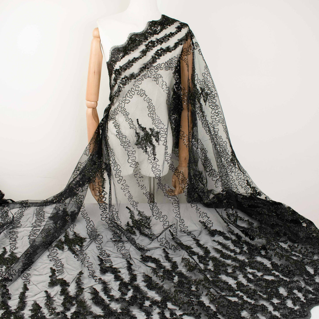 Sequin Coral Embroidered Lace Black 130CM Wide $79.99/MPriced per 25cm. For example to order 2 meters...
