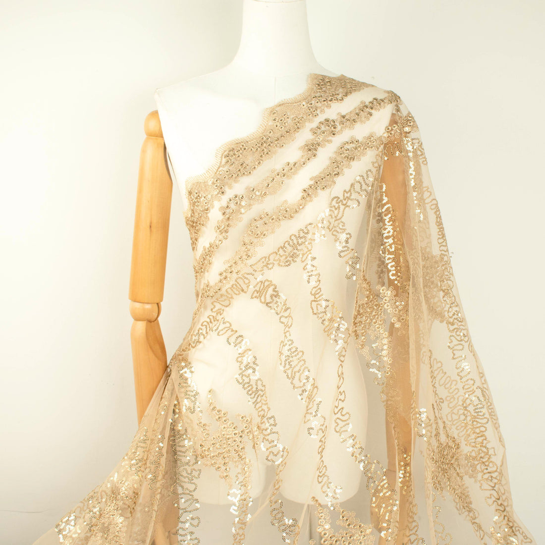 Sequin Coral Embroidered Lace Gold 130CM Wide $79.99/MPriced per 25cm. For example to order 2 meters...