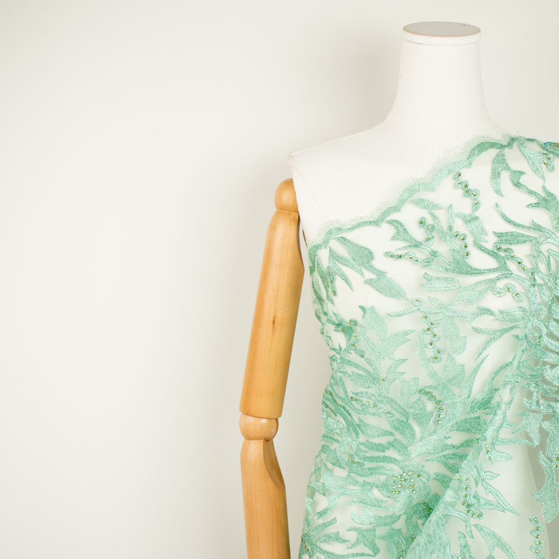 Embroidered Diamante Lace Mint