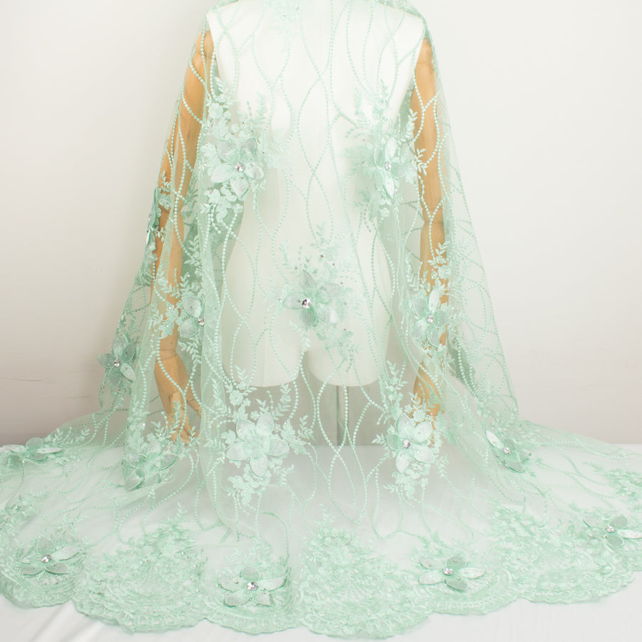 3D Flower with Gemstone Jewel Lace Design-4 Mint